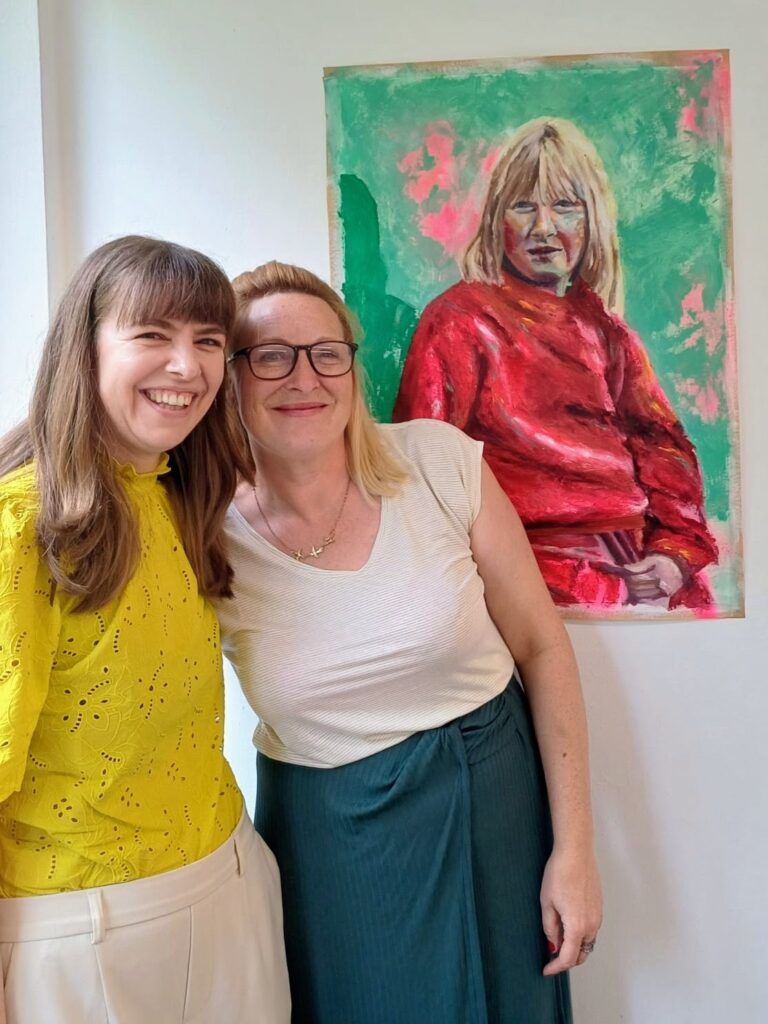 I focus on scenes and portraits that evoke feelings of happiness, nostalgia and connection. I often work from old childhood photos. Bold colours are central to my artistic expression – I’m drawn to 80s and 90s inspired colour paletettes, and I often incorporate graffiti spray paint to evoke joy and a sense of nostalgia.